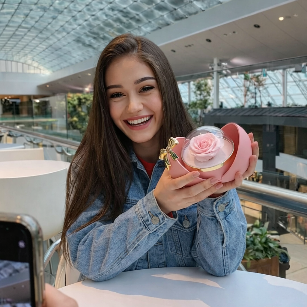 Una rosa eterna que simboliza tu amor y una joya escondida que la sorprenderá cuando menos lo espere. Regálale una emoción que se quede con ella toda la vida.